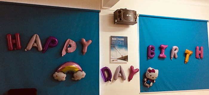 伴隨著主持人熱情洋溢的開場白,生日會(huì)正式開始了,大家一起點(diǎn)蠟燭、唱生日歌、吹蠟燭、切生日蛋糕等等,給大家營造了一個(gè)溫情濃濃且令人難忘的慶生會(huì)。