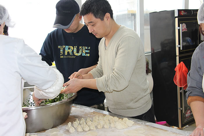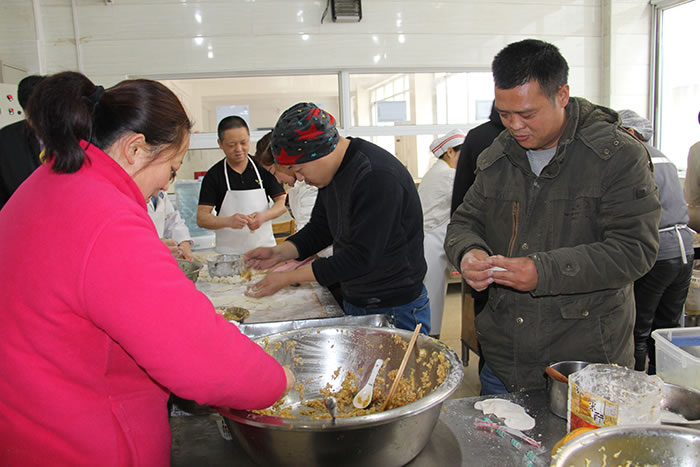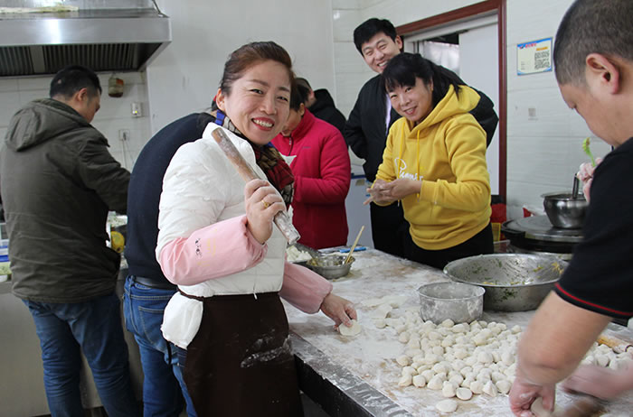 雖然天氣寒冷,但昌達(dá)集團(tuán)的餐廳里卻是一片熱火朝天的景象,大家興致勃勃,各自拿出看家本領(lǐng),發(fā)揮特長,分工協(xié)作,有的切菜、有的調(diào)陷,忙的不亦樂乎,包出來的餃子也是形態(tài)各異,有的形象逼真栩栩如生,有的皮薄餡大令人饞涎欲滴。